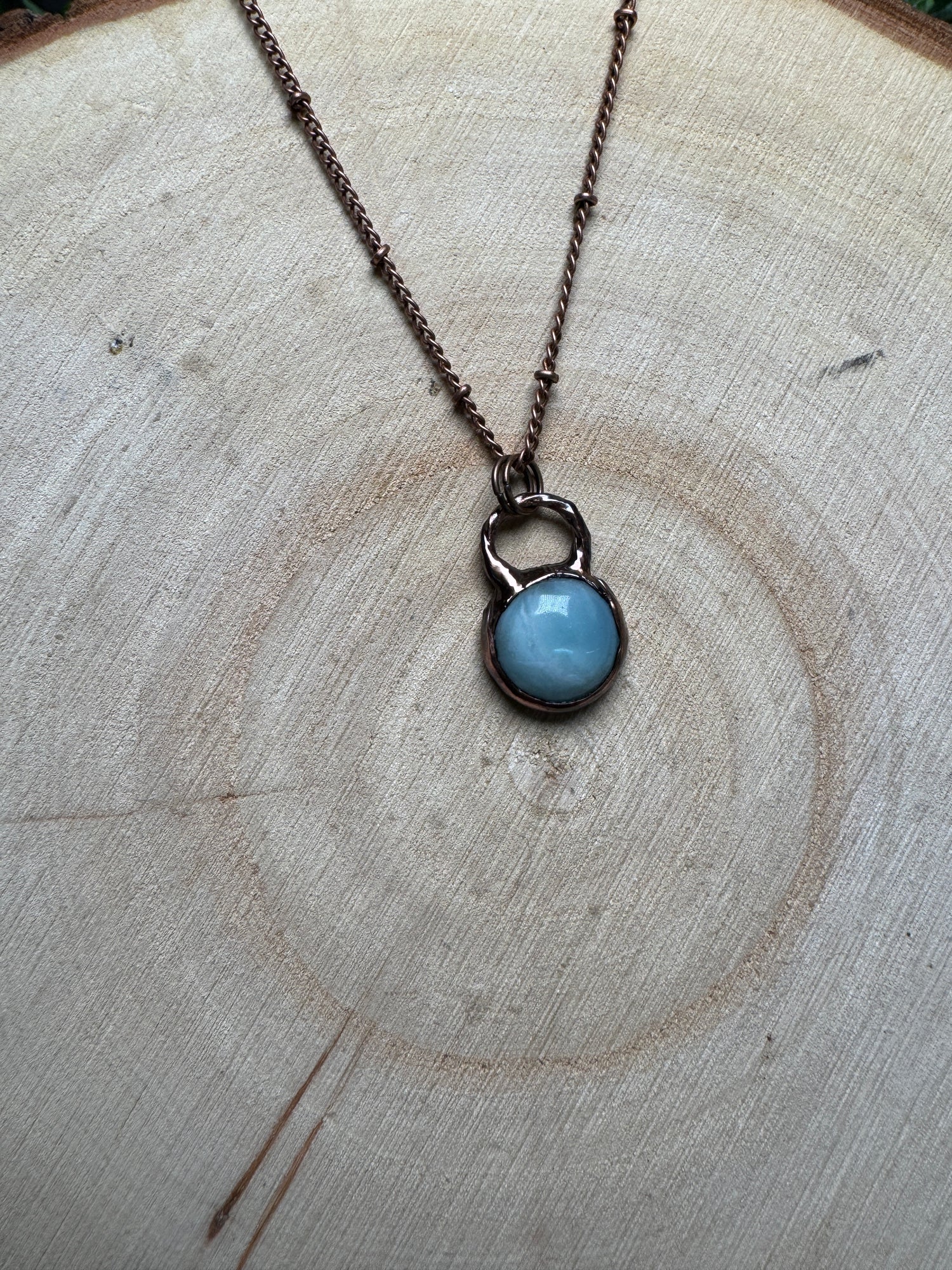 This necklace is made with copper. This pendant hangs on an 18" copper chain necklace.