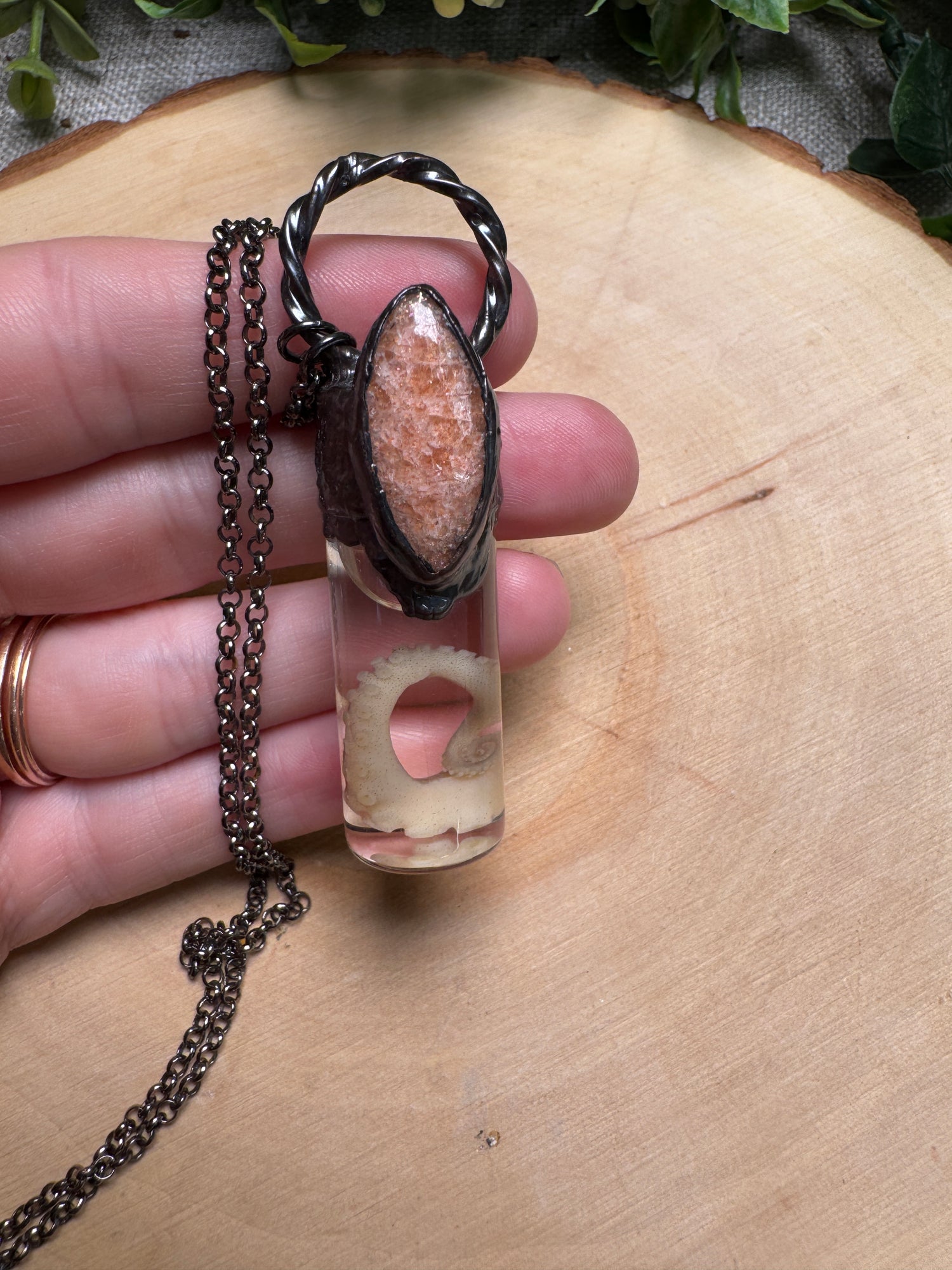Octopus Tentacle Wet Specimen and Sunstone Necklace