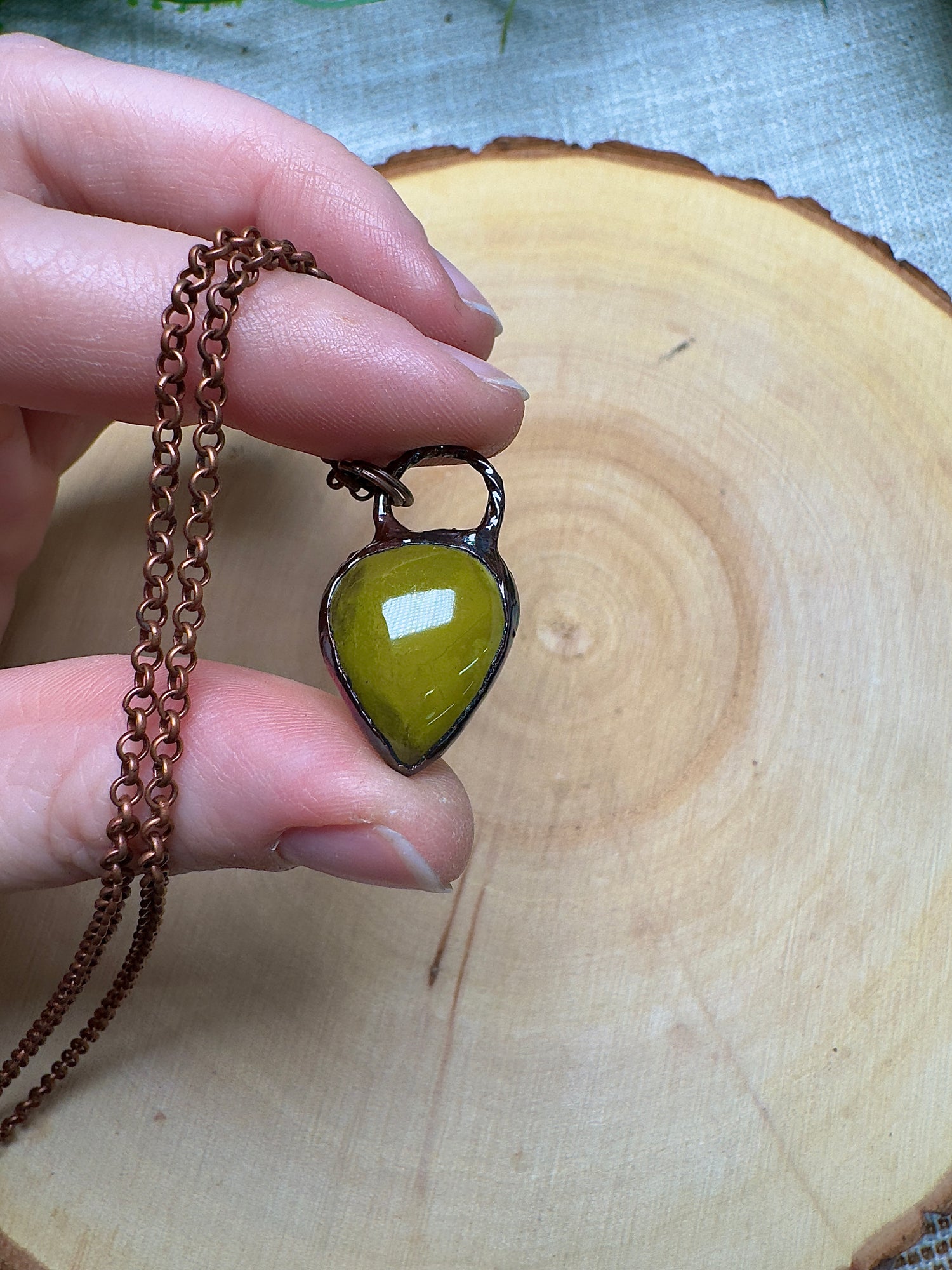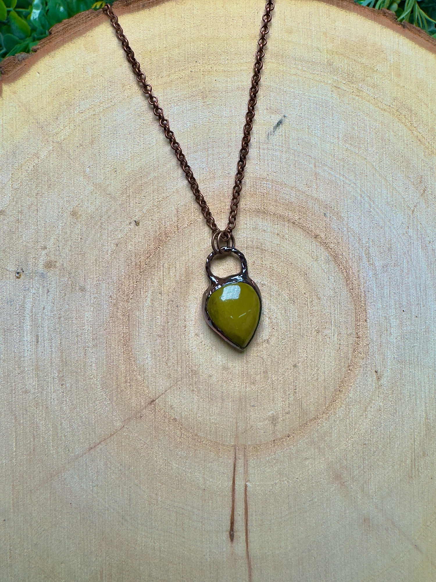 This necklace is made with copper. This pendant hangs on an 18" copper chain necklace.